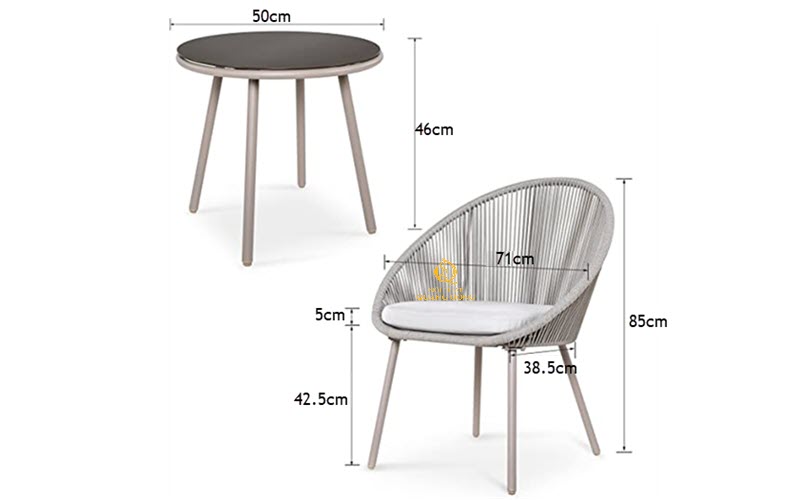 kích thước bàn: đường kính 50cm, cao 46cm