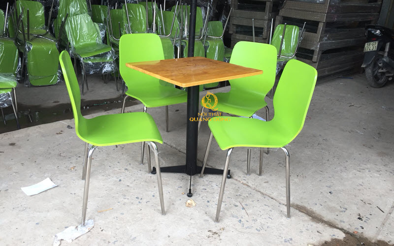 Ngoài ra, khách hàng hoàn toàn có thể đặt sản xuất theo màu sắc yêu cầu như: nâu gỗ, trắng sữa, đen nhám, vàng sáng hoặc các tông pastel nhẹ nhàng khác – giúp bộ bàn ghế dễ dàng hòa hợp với phong cách thiết kế tổng thể của quán hoặc nhà hàng.
