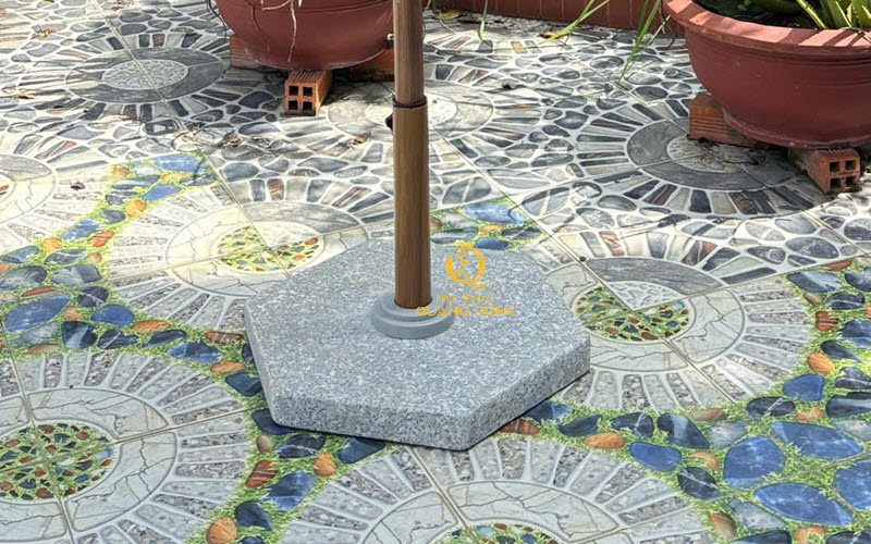 Đế dù bằng đá granite tự nhiên giúp sản phẩm đứng vững và an toàn khi sử dụng ngoài trời. Với trọng lượng 65kg ± 3kg, đế dù giúp tăng độ bám nền, hạn chế rung lắc khi gặp gió và đảm bảo trụ dù luôn ổn định trong suốt quá trình sử dụng.