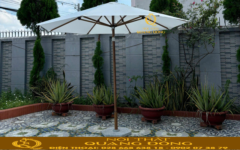 Nhờ hệ thống đế cố định vững chắc, người dùng có thể yên tâm sử dụng ô dù trong thời gian dài mà không lo nghiêng đổ, góp phần nâng cao độ bền và tuổi thọ sản phẩm.
