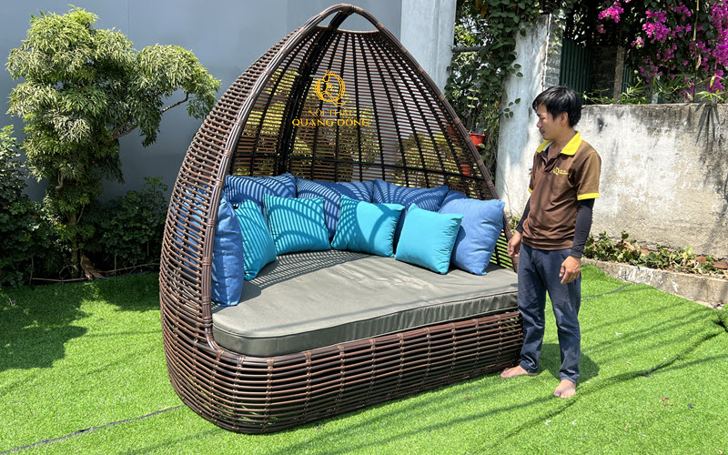 Không giống các mẫu giường tắm nắng truyền thống, QD-533 tạo nên một "ốc đảo riêng" cho người dùng. Kiểu dáng mái vòm kín đáo nhưng vẫn thoáng khí, rất thích hợp cho những ai yêu thích sự yên tĩnh, riêng tư. Đây là mẫu sản phẩm lý tưởng cho các khu nghỉ dưỡng cao cấp, homestay sân vườn hay biệt thự có không gian ngoài trời rộng rãi.