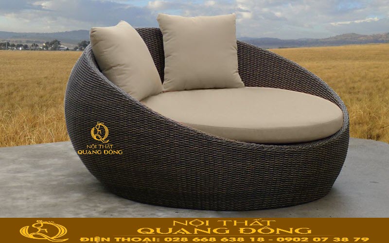 Điểm nhấn của giường tắm nắng QD-538 nằm ở phần thân được đan kín hoàn toàn bằng sợi mây nhựa bán nguyệt 6 ly, loại vật liệu chuyên dùng cho nội thất ngoài trời cao cấp.