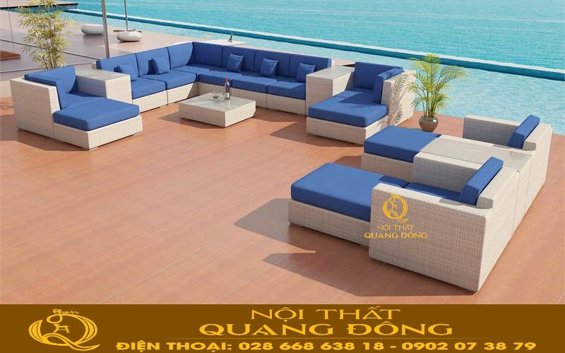 Với thiết kế dạng khối lớn, chia module rõ ràng và cấu trúc mở, bộ sofa giả mây QD-671 là lựa chọn lý tưởng cho: