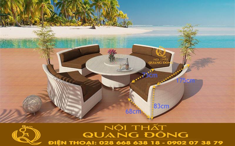 Với hình dáng tròn độc đáo cùng kiểu dáng sang trọng, bộ sofa giả mây QD-676 có thể ứng dụng linh hoạt trong nhiều không gian: