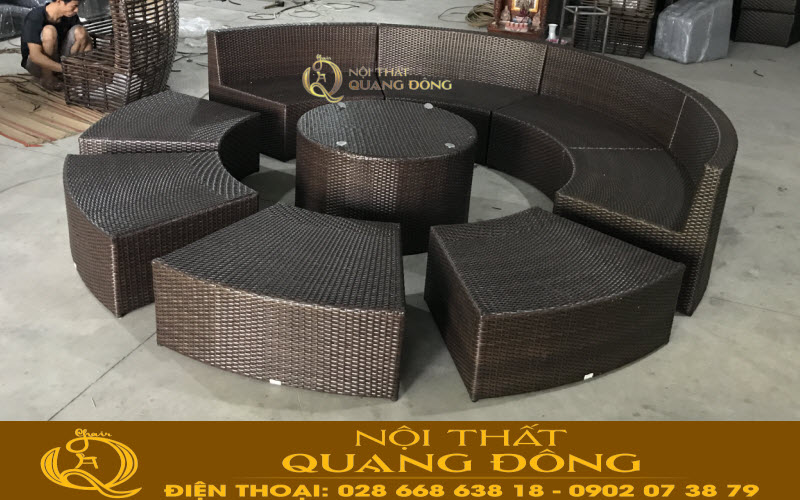 Điểm đặc biệt của bộ sofa giả mây QD-677 nằm ở kiểu dáng hình tròn hoàn chỉnh, trong đó: