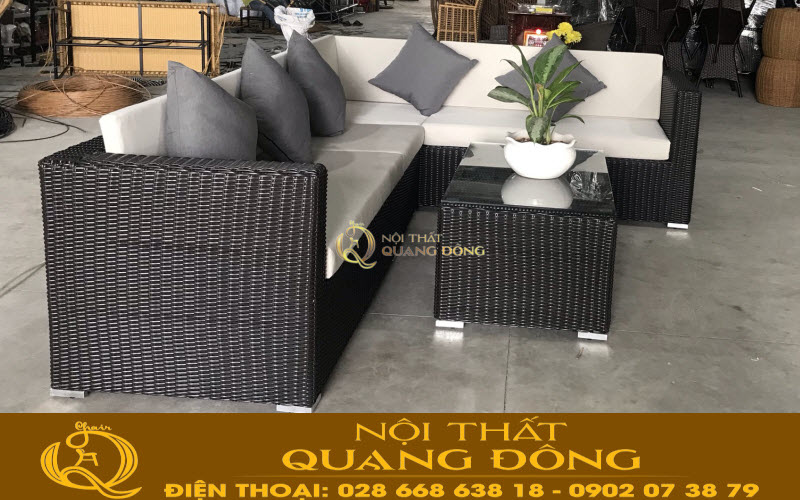 Chúng tôi là đơn vị sản xuất trực tiếp, chuyên cung cấp các mẫu bàn ghế giả mây chất lượng cao, trong đó sofa giả mây QD-709 là mẫu được nhiều khách hàng yêu thích nhờ thiết kế đẹp, chắc chắn, hiện đại.
