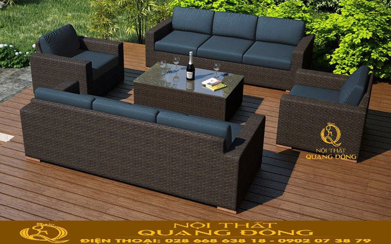 Với thiết kế rộng rãi, sang trọng cùng với chất liệu nhựa giả mây, là một trong những chất liệu được chuộng nhất hiện nay. Chọn lựa bàn ghê sofa mây nhựa Nội thất Quang Đông là chọn lựa tuyệt vời nhất cho không gian của bạn