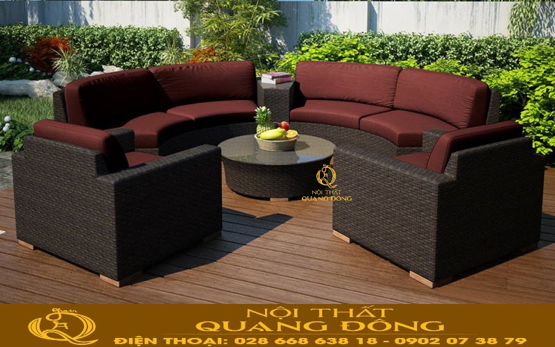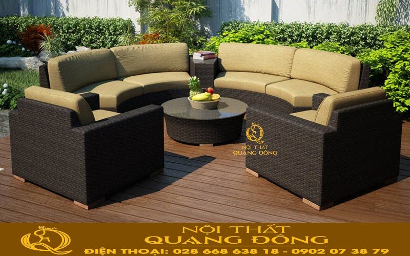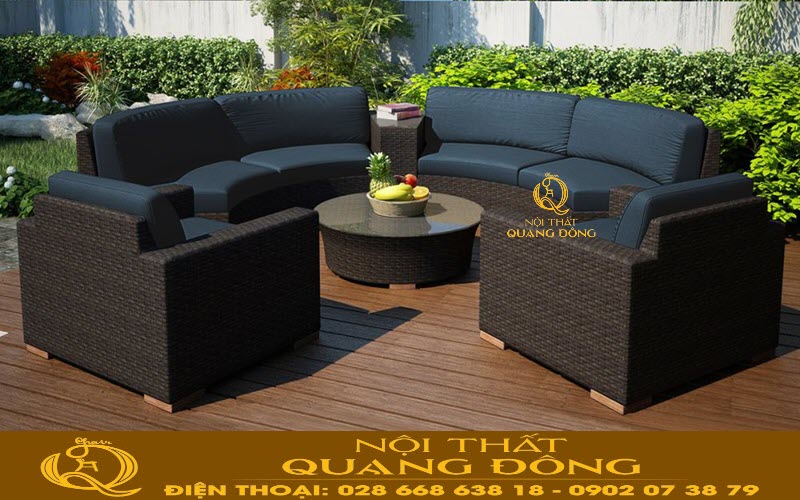Bộ sofa giả mây QD-730 là sản phẩm được thiết kế tinh tế theo hình bán nguyệt, tạo nên điểm nhấn độc đáo cho không gian sân vườn, biệt thự, khu nghỉ dưỡng hoặc quán cà phê ngoài trời cao cấp. Sự kết hợp giữa thiết kế sáng tạo, chất liệu bền bỉ và kiểu dáng hiện đại khiến mẫu ghế này trở thành một trong những sản phẩm nổi bật nhất trong bộ sưu tập nội thất giả mây cao cấp.