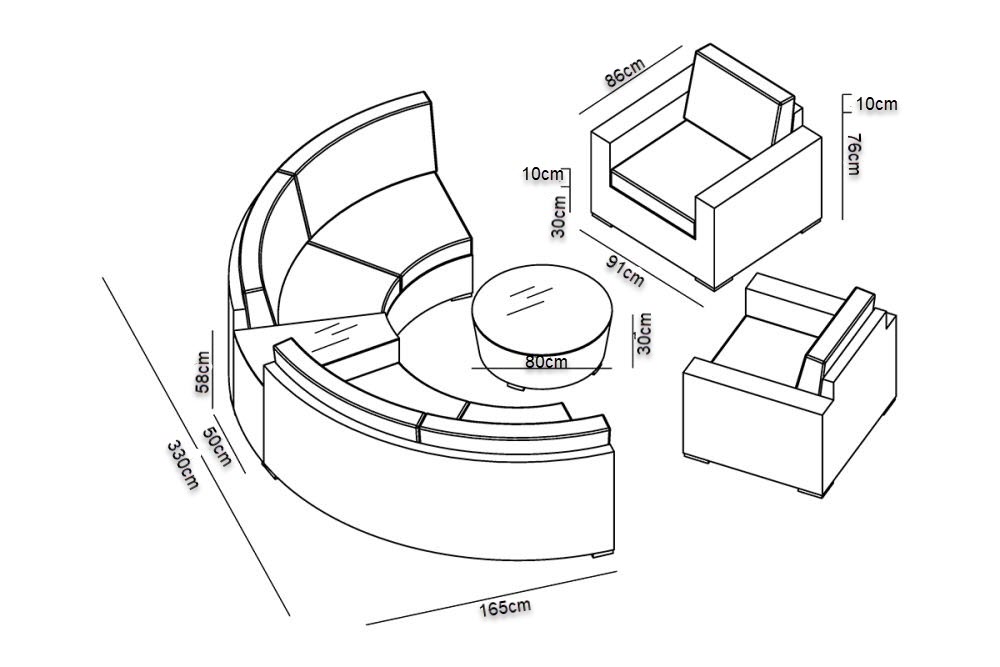 Kích thước sofa bán nguyệt: 330*165*86*76cm