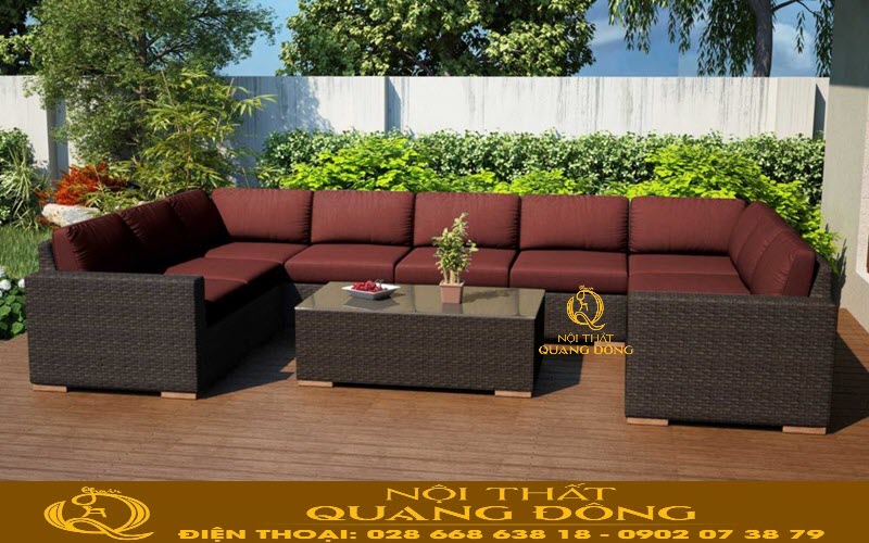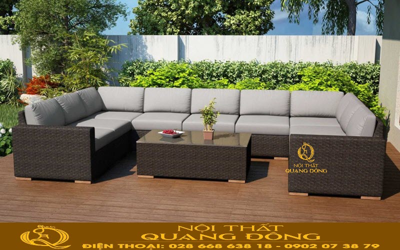 Sofa giả mây QD-735 mang thiết kế chữ U được lắp ghép 3 băng ghế lại với nhau, sức chứa 9 người rộng rãi, mang đến sự tiện nghi cho gia đình bạn. Sản phẩm được đan bằng sợi mây nhựa dẹp 7-8 ly với kiểu đan lóng mốt truyền thống tạo nên sản phẩm hoàn thiện, chỉn chu nhờ đôi bàn tay khéo léo của các thợ thủ công làng nghề đan lát.