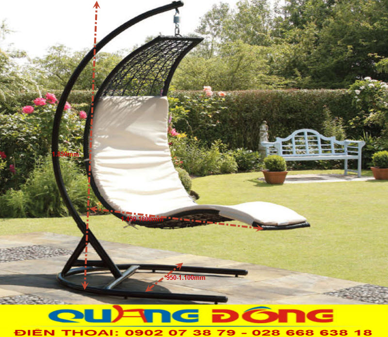 Kiểu ghế nằm dài với những đường cong gợi cảm treo lơ lững với một độ cao vừa tầm, biên độ đong đưa nhẹ nhàng khá thích hợp cho nhu cầu thư giãn ở sân vườn, ban công. Kiểu dáng tối giản nhưng vẫn đảm bảo chất lượng cao với mọi thời tiết, vững chắc, an toàn cho người sử dụng. Thay đổi lớn so với những chiếc xích đu truyền thống, xử dụng cần treo 1 xích, chân đế chữ U sơn tĩnh điện xử lý ống thép.