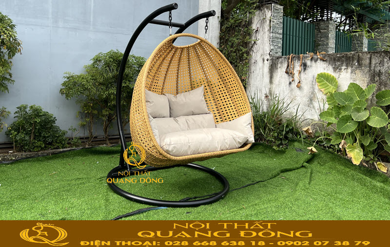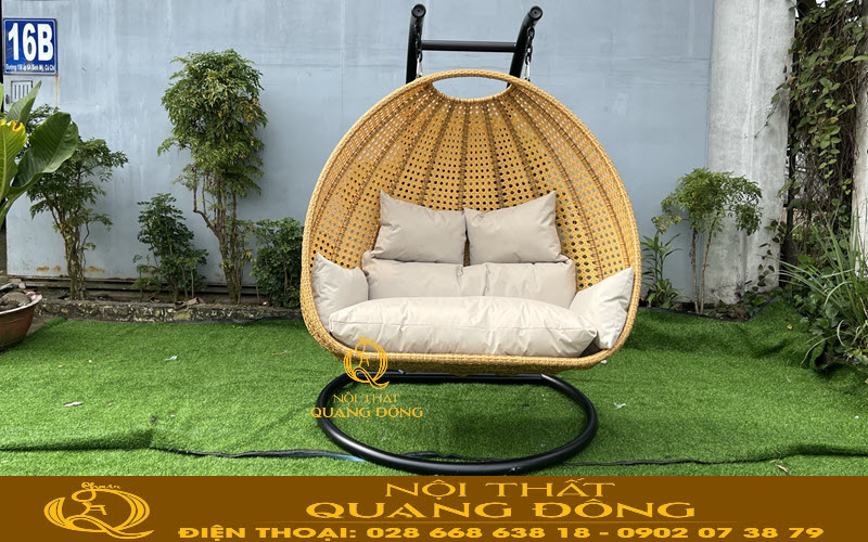 Xích đu giả mây QD-424 nổi bật với tone màu vàng lựa chọn tuyệt vời cho không gian nội ngoại thất của bạn