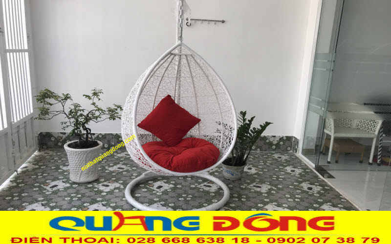 Mẫu xích đu mây nhựa QD-425 màu trắng tinh khôi
